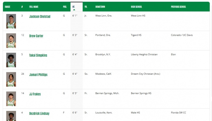 俄勒冈大学上赛季出场时间前5的后卫里,有4人今夏离队。球队官网目前的名单上共有16人(不包括林葳),有5人担任后卫,3人上赛季效力于俄勒冈。可以确定一个首发位置的是Jackson Shelstad,他大二赛季首发了全部35场比赛,场均13.7分2.9篮板2.7助攻,入选大十联盟三阵。而Drew Carter和Jamari Phillips过去是边缘球员,前者两个赛季共出战13场比赛场均2.2分钟;后者大一赛季共出战14场比赛场均5.4分钟。