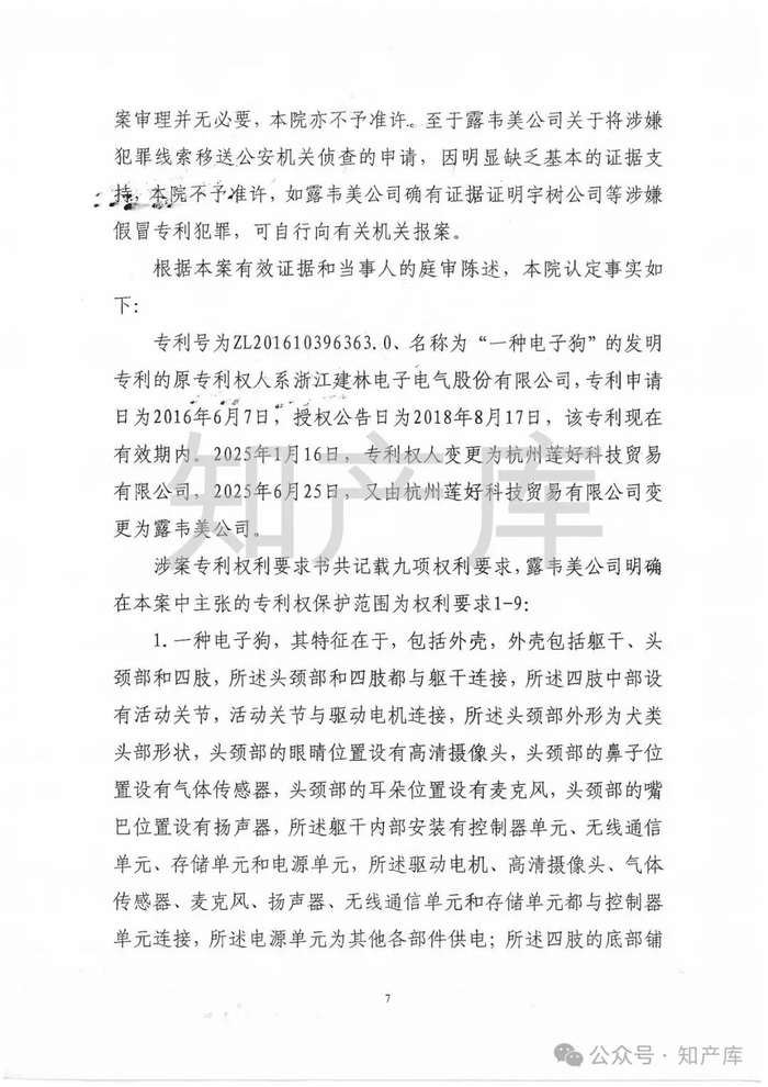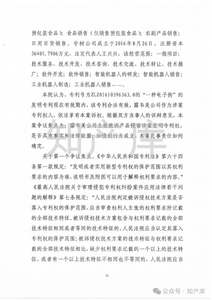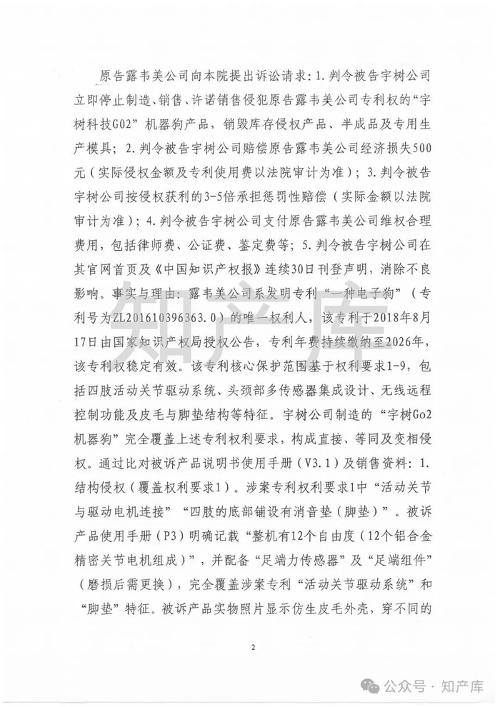 露韦美这家公司拥有一个名叫 “一种电子狗” 的发明专利(并且已经获得授权)。他们认为宇树科技研发销售的机器人产品,可能用到了他们受专利保护的技术,所以向法院提起了诉讼。
