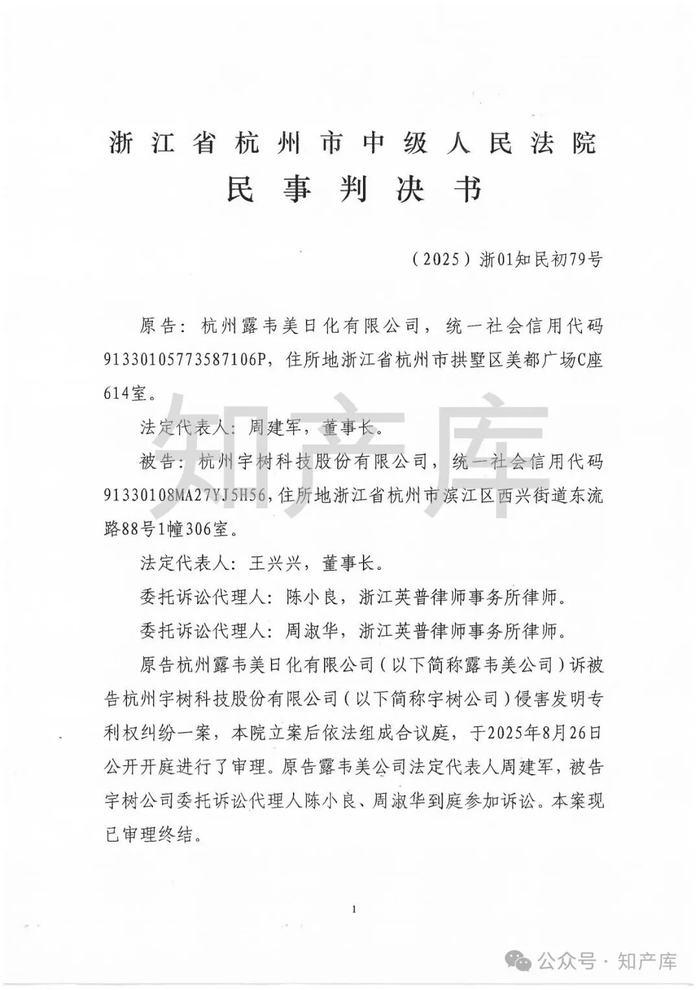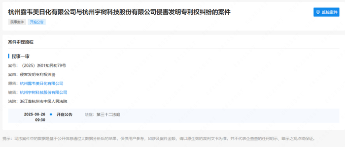一家卖日用品的公司(杭州露韦美日化有限公司),告了一家做机器人的公司(杭州宇树科技股份有限公司),理由是宇树科技可能侵犯了他们的发明专利。