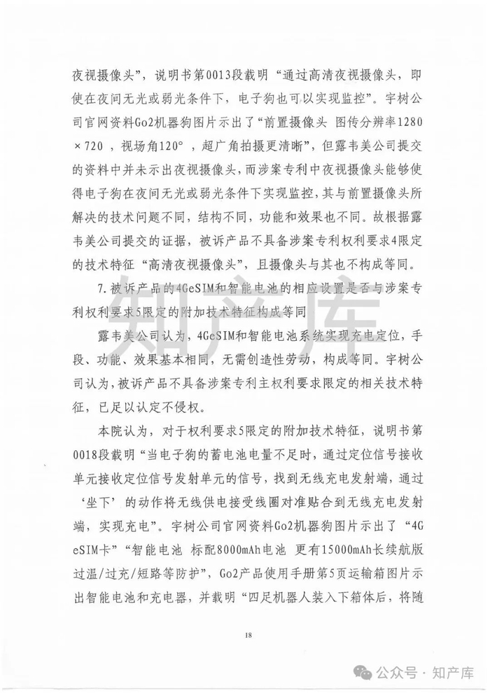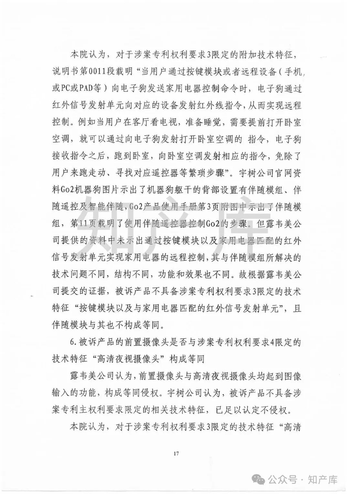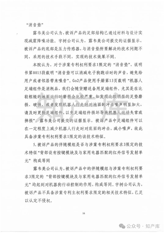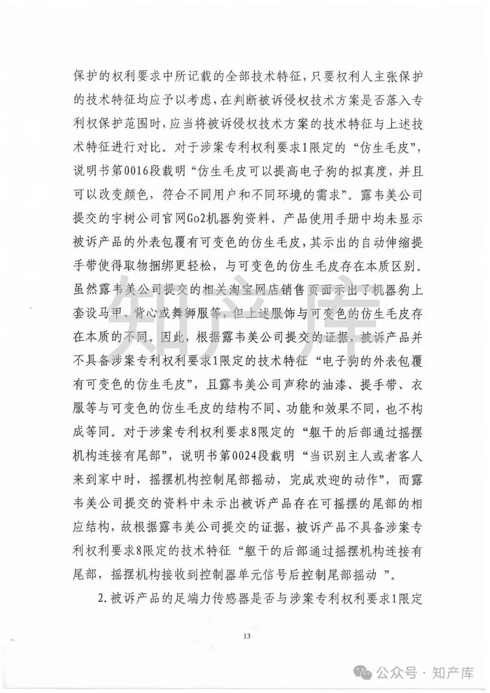 总结一下:法院认为,宇树的机器狗在最关键的技术特征上,和露韦美的专利描述完全不同,所以不构成侵权。