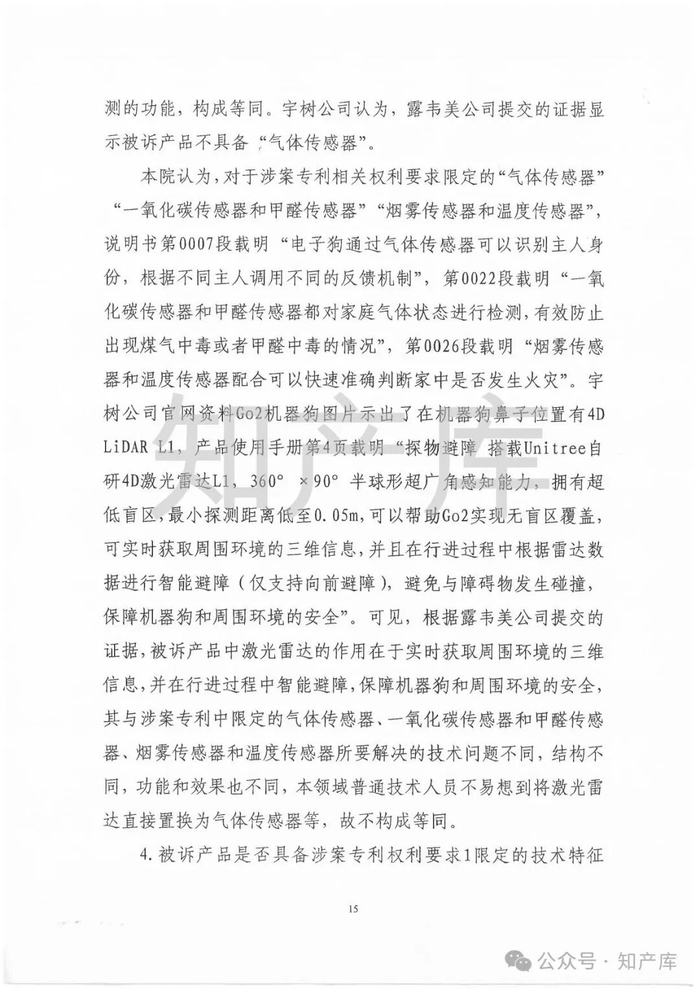 法院对比了专利描述和宇树的产品,发现根本对不上号。核心有两点: