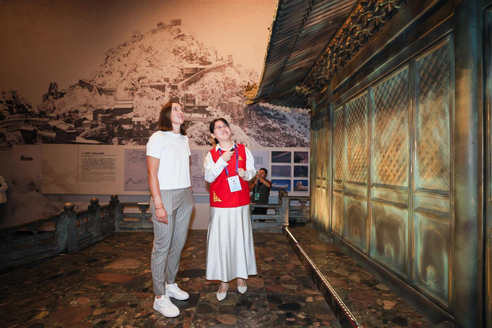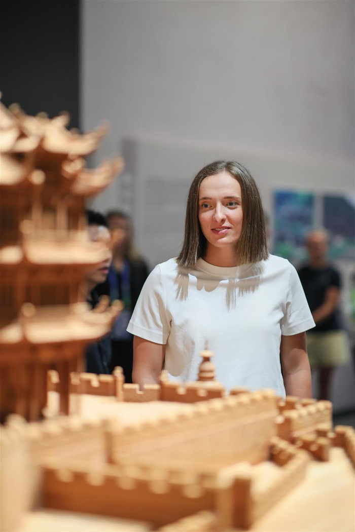 活动现场,斯瓦泰克亲手体验斗拱搭建与黄鹤楼模型拼插,细致观察结构节点,表现出对中国传统建筑力学与美学的浓厚兴趣。最后,她还探访了馆内的火星展区,并获赠纪念礼物。