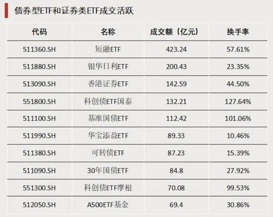 债券型ETF和证券类ETF成交活跃