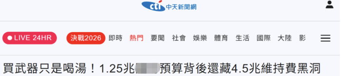 台湾网友也纷纷批评,1.25万亿预算后面还藏着超4万亿的“巨坑”,加上此前交货延宕的装备,总负担至少超过6万亿。这样的防务预算简直是“把台湾人当傻子”,绝对不能通过。“台湾被掏空了!”