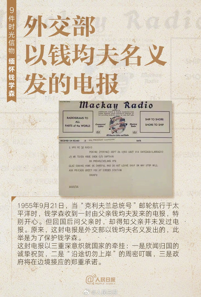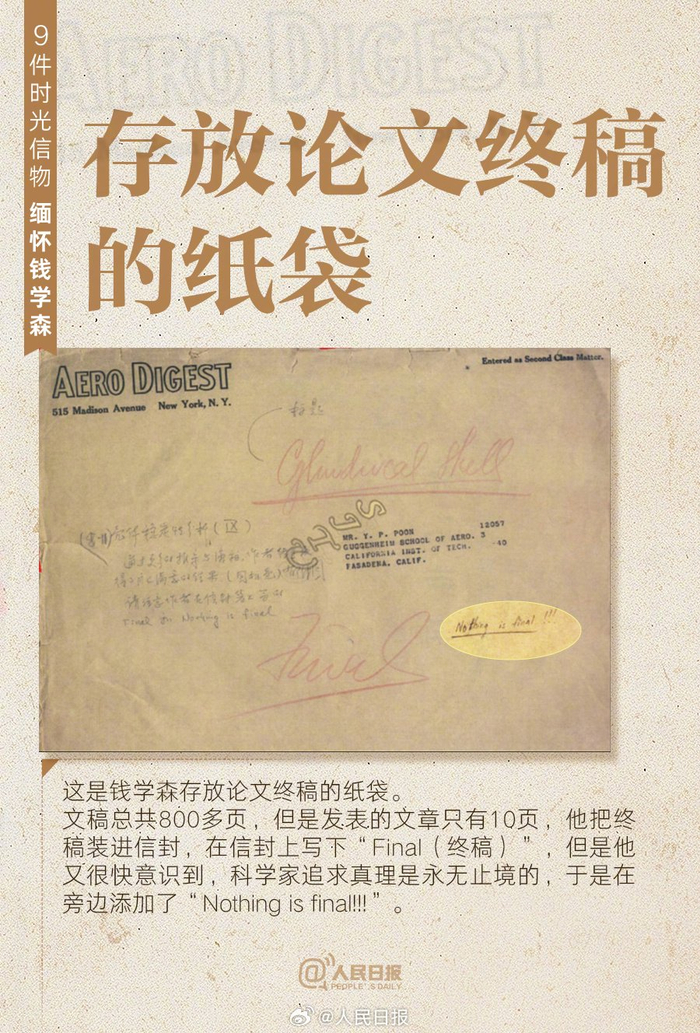 写着“Nothing is final!!!”的论文终稿纸袋,外交部以钱均夫名义发的电报,在发射场穿的翻毛皮靴,“两弹一星功勋奖章”……70年前,钱学森回国。五年归国路,十年两弹成,他是中国航天事业奠基人。今天,钱学森诞辰114周年纪念日,9件时光信物缅怀钱学森↓↓