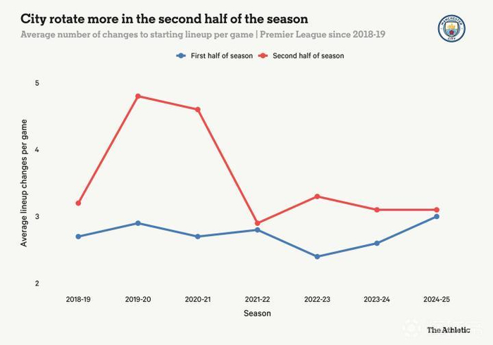 瓜迪奥拉比往常更多地坚持使用这套首选阵容,也许只是为了现阶段能跟上节奏,但在下半赛季,他肯定需要信任他更广泛的阵容。球员轮换及其带来的休息,一直是曼城在赛季后半段表现出色的关键支柱。