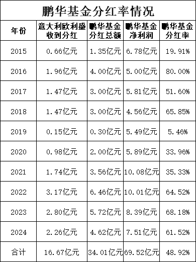 值得注意的是,外资股东也赚的盆满钵满。鹏华基金第二大股东是意大利欧利盛资本资产管理股份公司,持股比例49%。可以推算出,近十年(2015-2024),意大利欧利盛从鹏华基金获得分红16.67亿元。