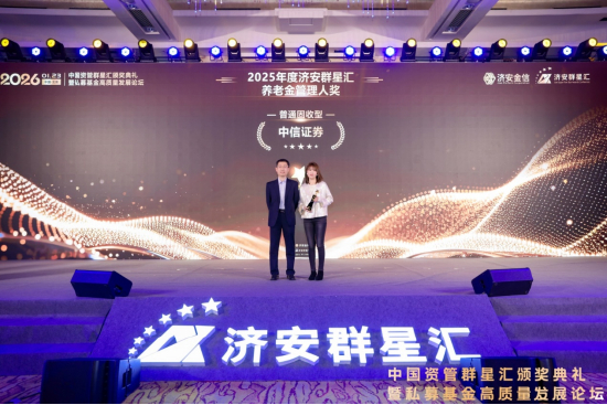 济安金信养老金研究中心主任闫化海为济安群星汇普通固收型养老金管理人奖获奖机构中信证券颁奖。