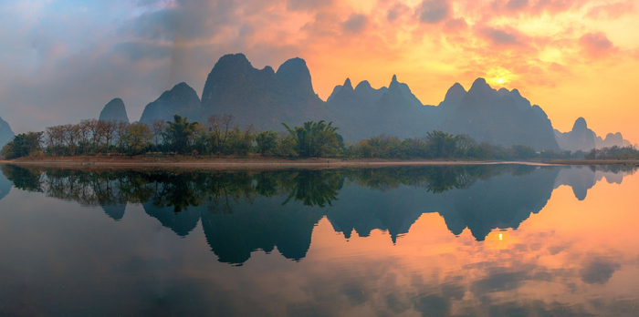 腊月寒冬,青山静立,倒影沉入漓江清波。浪石滩头,朝霞初绽,金辉倾泻,似流金铺展。山水相映,寒色中透暖意,晕染出一幅绚丽静谧的冬日画卷。(阳朔县纪委监委供 夏立慧/摄)