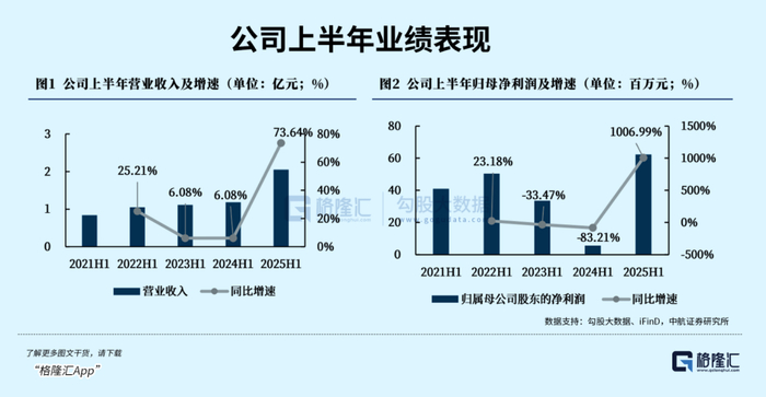 2025年上半年,公司营收2.05亿元,同比增长73.64%;归母净利润0.62亿元,同比暴涨1006.99%;毛利率84.54%(同比微降0.62个百分点),净利率30.42%(同比提升25.65个百分点)。