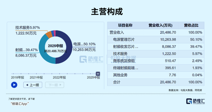 3.产品业绩爆发:电源管理芯片为第一大营收来源,2025年上半年营收1.03亿元,同比增长95.79%,占比超50%;射频收发及ADC/DAC芯片营收0.81亿元,同比增长71.80%,四大产品线协同发力。