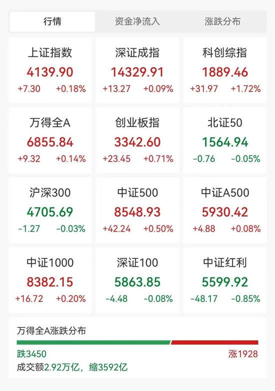 1月27日下午,市场探底回升,三大指数集体翻红,创业板指一度涨超1%。截至收盘,上证指数涨0.18%,深证成指涨0.09%,创业板指涨0.71%。沪深两市成交额2.92万亿,较上一个交易日缩量3592亿。盘面上,全市场超3400只个股下跌。