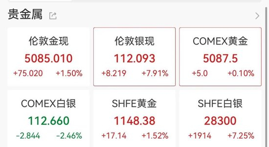 1月27日,黄金、白银价格仍在走高。截至发稿,黄金现货、期货双双站上5000美元/盎司“高地”,白银现货、期货则突破110美元/盎司。