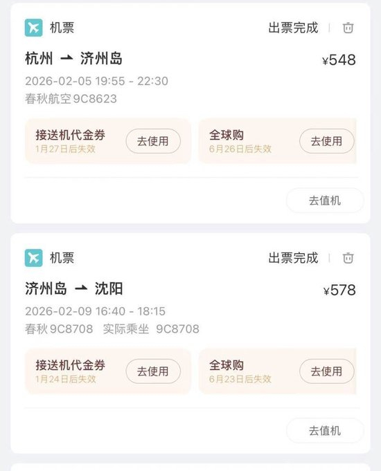 上游新闻记者看到,还有不少在外地工作的东北网友在小林的评论区询问是否有其他春运返乡路线。同样也在杭州工作的哈尔滨女生小孙就提供了自己的计划,她打算2月5日从杭州飞往韩国济州岛玩几天,9日再从济州岛飞往沈阳,在沈阳玩几天,再坐高铁回哈尔滨。