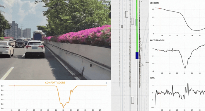 比如现实中因急刹车引起的乘客不适,这一行为可在WeRide GENESIS仿真中被AI指标模块,量化为具体的舒适度评分,并实时反馈给算法团队,推动针对性优化与快速复验。