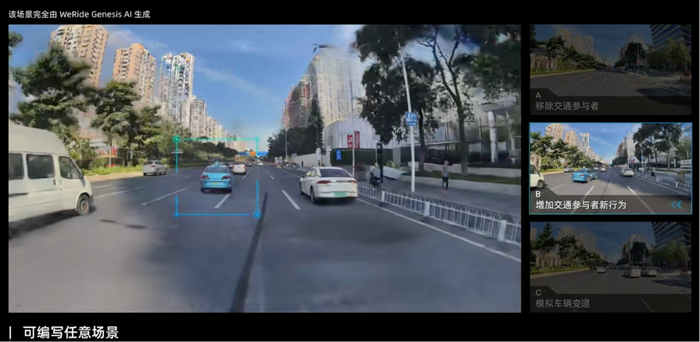 通用的另一个含义,是WeRide GENESIS本身对于环境的精准构建,几乎能“一句话”无限生成、回放和变化“长尾场景”