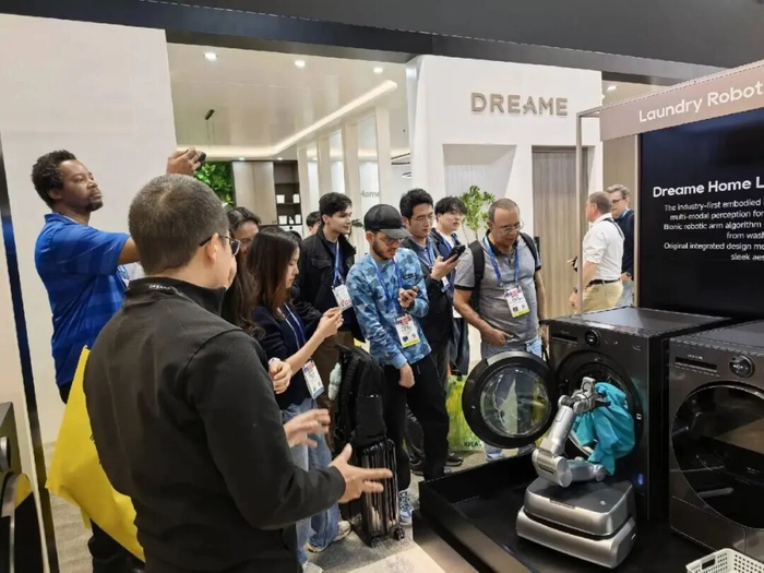 在今年的展台上,追觅还推出了首款AI具身洗护机器人,将实验室里的灵活机械臂与复杂算法,带入了每个家庭都熟悉的洗衣场景中。