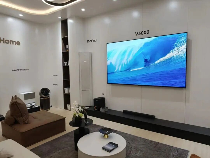 再比如,摆在展台最重要位置的追觅Aura Mini LED AI电视V3000——它不仅是一台电视,更是一台全方位集成AI功能的显示设备,可以为家庭带来智能视听、自然交互、全屋互联的新体验。