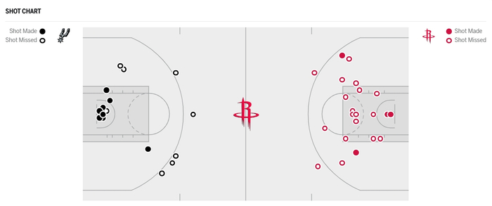 在末节前11分钟,火箭投了22颗球,只进了3球,最后一分钟垃圾时间扣了一个,最终单节进了4球,拿到13分。