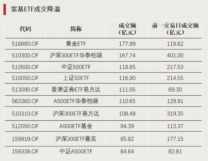 主要宽基指数ETF今日成交明显降温,部分ETF尾盘仍有大量集中卖单。