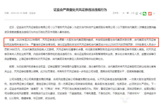 公告披露,在2020年至2022年期间,天风证券以自有资金、管理的客户资产为原第一大股东武汉当代科技产业集团股份有限公司(简称当代集团)进行提供融资等多项违法行为,违反了《证券法》多条规定。